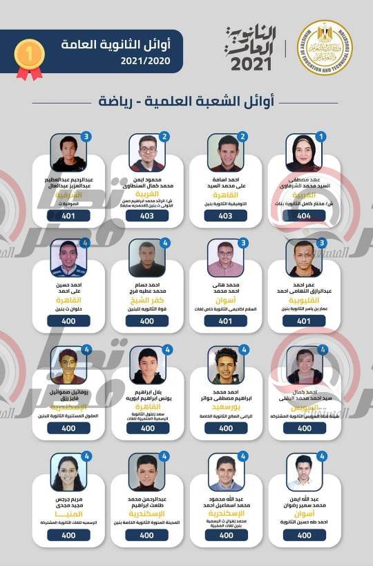 أسماء أوائل الثانوية العامة 2021 على مستوى الجمهورية موجز الأنباء